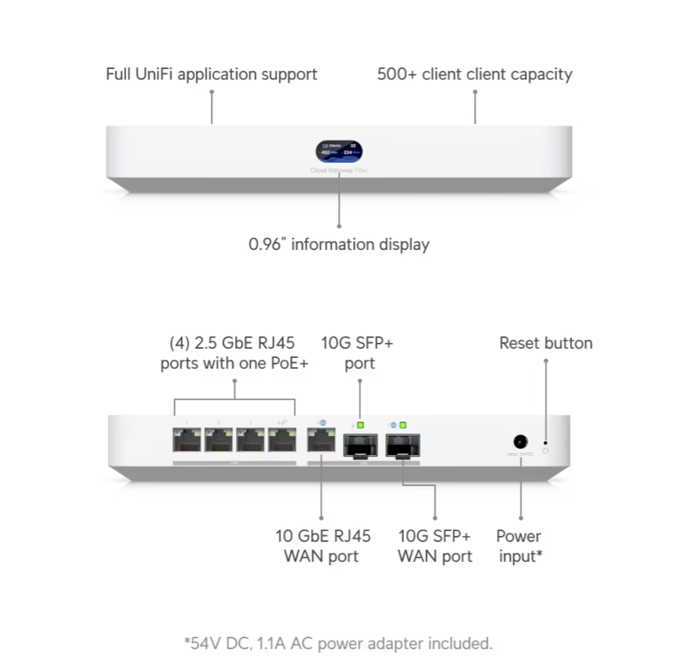 The UniFi Cloud Gateway Fiber is a powerful foundation for any fibre-based network, delivering performance, security, and simplified management in a single, integrated gateway—engineered to support today’s demands and tomorrow’s growth.